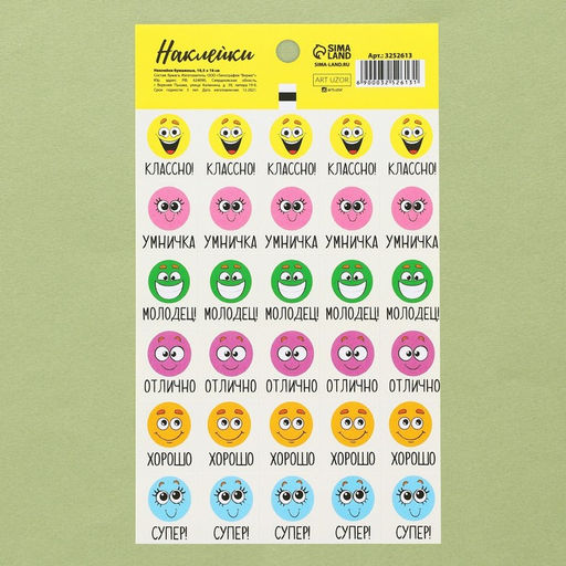 Цена за 10 шт. Бумажные наклейки оценки "Хорошее настроение", 10,5 х 18 см