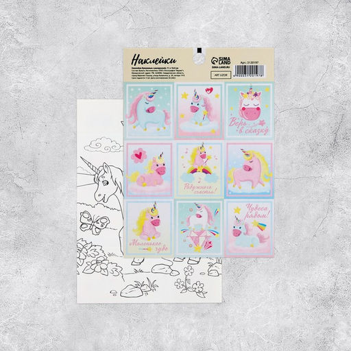 Цена за 10 шт. Наклейки бумажные Единороги, c раскраской на обороте, 11 15,5 см