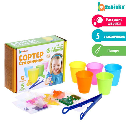 Набор для сортировки Сортер-стаканчики: гидрогель, с пинцетом, по методике Монтессори