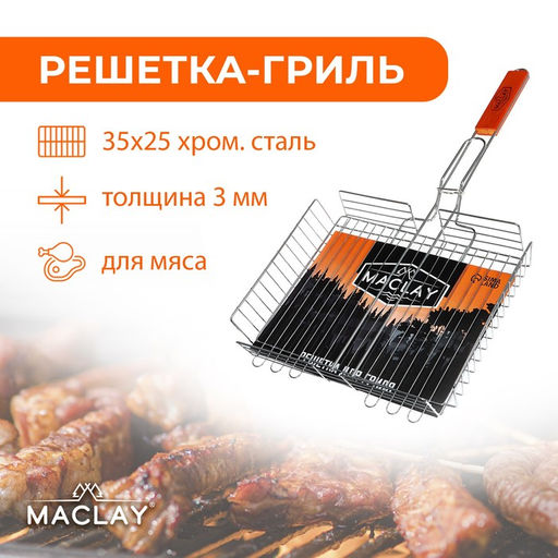 Решётка-гриль для мяса Maclay Lux, хромированная сталь, 56x35 см, рабочая поверхность 35x25 см