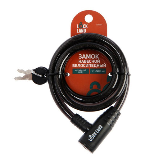 Замок навесной велосипедный LOCKLAND, 12 x 1200 мм, английский ключ с пластиковой ручкой