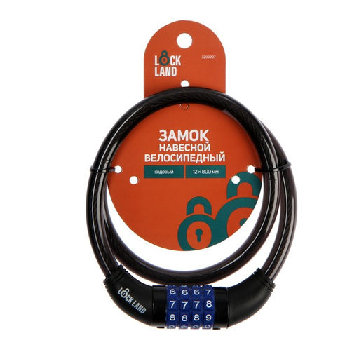 Замок навесной велосипедный LOCKLAND, кодовый, 12 х 800 мм