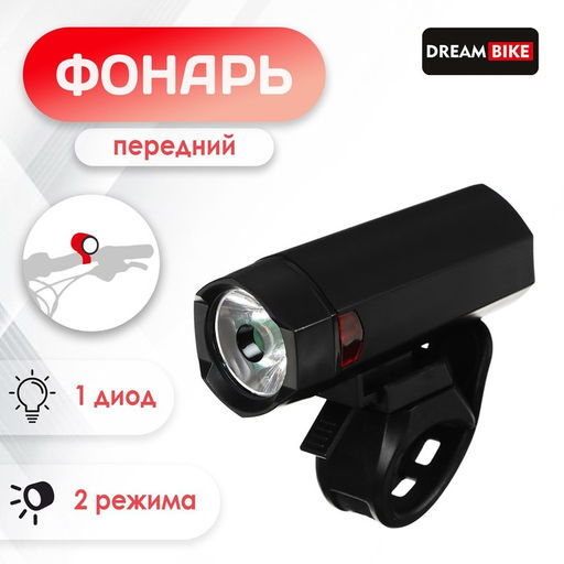 Фонарь велосипедный Dream Bike JY-7058, передний, 1 диод, 2 режима