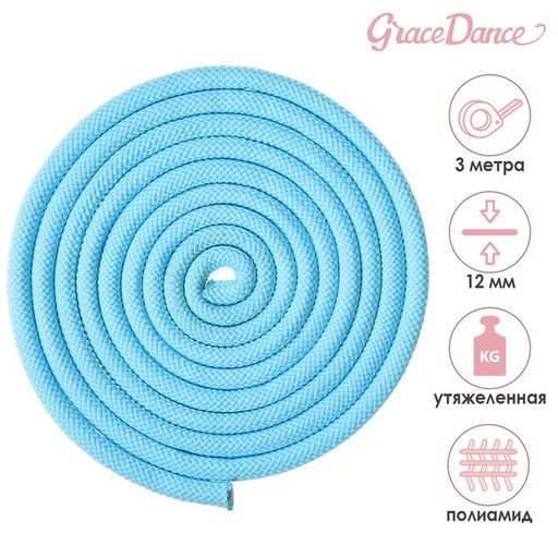 Скакалка гимнастическая утяжелённая Grace Dance, 3 м, 180 г, цвет голубой