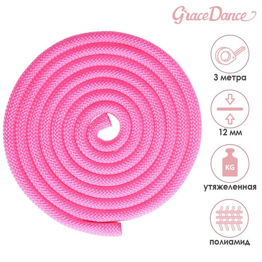 Скакалка гимнастическая утяжелённая Grace Dance, 3 м, 180 г, цвет неон розовый