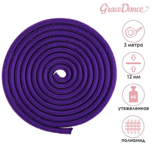 Скакалка гимнастическая утяжелённая Grace Dance, 3 м, 180 г, цвет фиолетовый