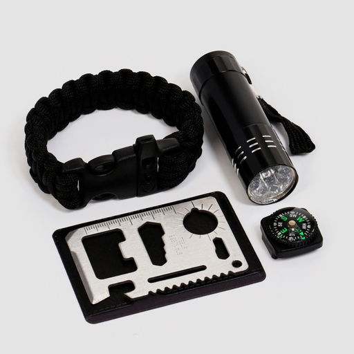 Набор для выживания 4в1 (фонарь, карта для выживания, паракорд, компас)