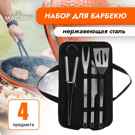 Набор для барбекю Maclay: вилка, щипцы, лопатка, нож, 38.5 см