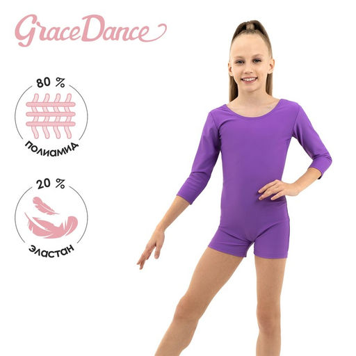 Купальник гимнастический Grace Dance, с шортами, с рукавом 3/4, р. 28, цвет фиолетовый