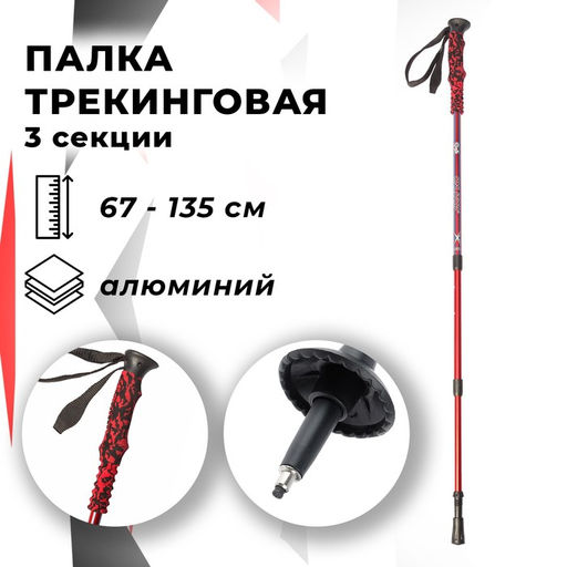 Палка для скандинавской ходьбы ONLITOP, телескопическая, 3 секции, алюминий, до 135 см, 1 шт., цвет красный/синий,