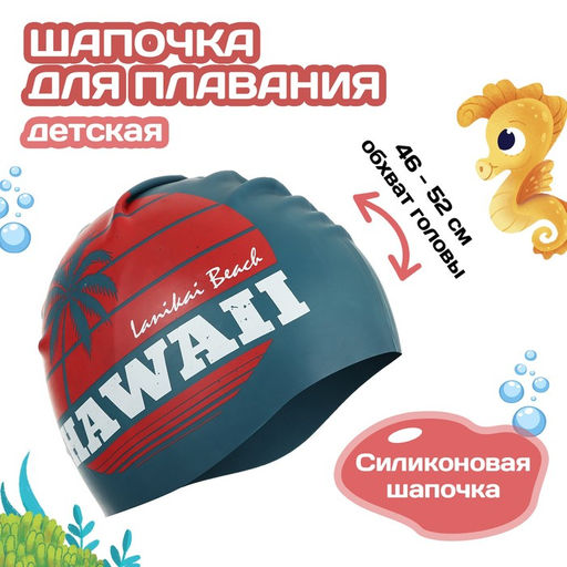 Шапочка для плавания детская ONLITOP HAWAII, силиконовая, обхват 46-52 см