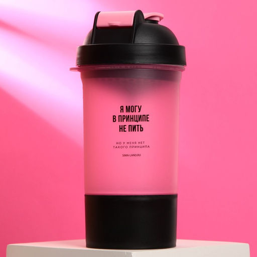 Шейкер спортивный Я могу не пить, чёрно-розовый, с чашей под протеин, 500 мл