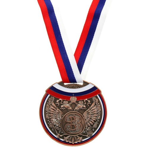 Медаль призовая 014 диам 7 см. 3 место, триколор. Цвет бронз. С лентой
