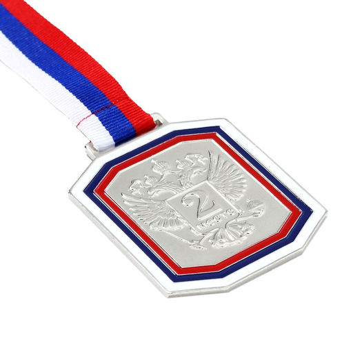 Медаль под нанесение 002, триколор. Цвет сер. С лентой. 6 х 7 см.