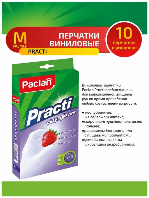 Перчатки виниловые Practi размер М 10шт