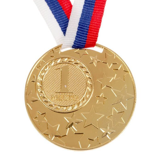 Медаль призовая 058 диам 5 см. 1 место. Цвет зол. С лентой