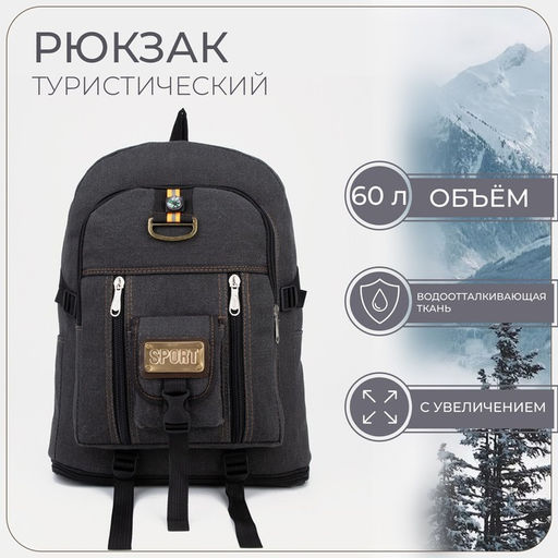 Рюкзак туристический, 60 л, отдел на молнии, наружный карман, цвет черный