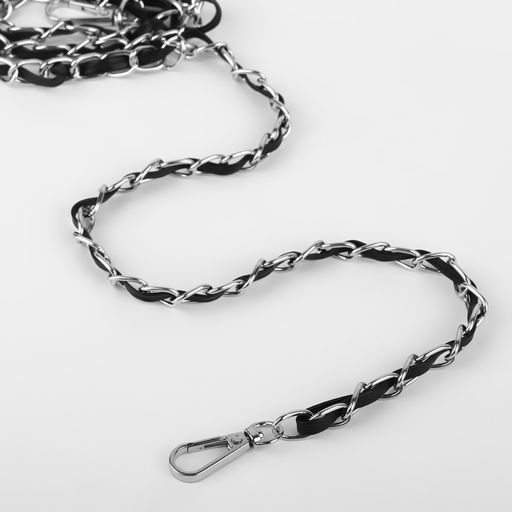 Цена за 2 шт. Цепочка с искусственной кожей для сумки, с карабинами, 10 15 мм, 118 3 см, цвет серебряный/чёрный