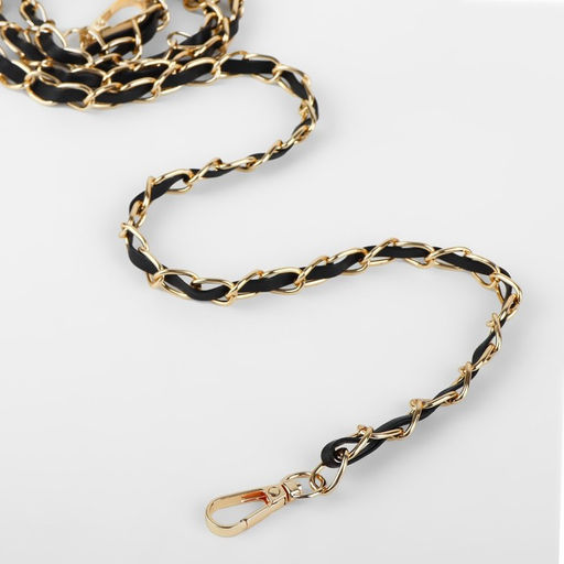 Цена за 2 шт. Цепочка с искусственной кожей для сумки, с карабинами, 10 15 мм, 118 3 см, цвет золотой/чёрный
