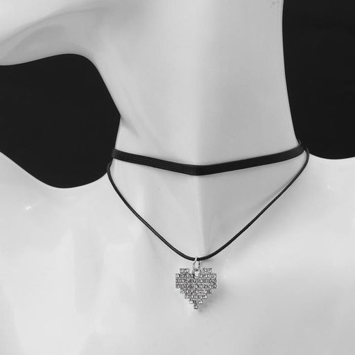 Чокер "Двойной" с нитью, сердце графика, цвет бело-чёрный в серебре ,L=40см