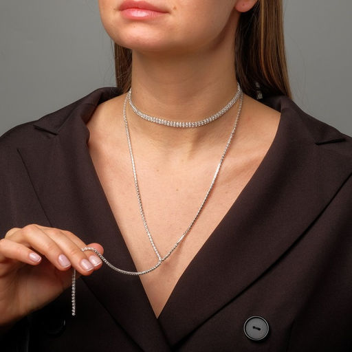 Чокер "Лёд", цвет белый в серебре 2 ряда, 44,5 см