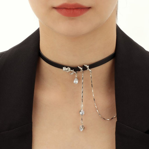 Чокер "Ошейник" роза с цепочкой, цвет чёрный с серебром, 44 см