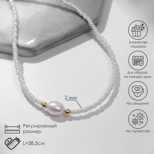 Чокер №2 "Майорка" жемчужина, цвет белый в золоте, 38,5+5см удлинитель