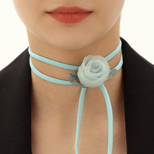 Чокер "Танго" роза с листьями, цвет голубой, 130 см