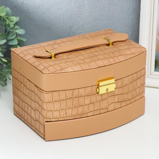 Шкатулка кожзам для украшений сундучок "Карамель питон" комбинированная 13х15х21,5 см