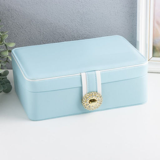 Шкатулка кожзам для украшений "С пряжкой" голубая 24х18,5х9 см