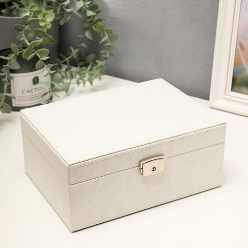 Шкатулка кожзам для украшений "Цветочное кружево" белая 9,5х16х22 см