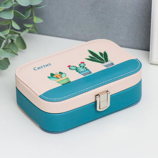 Шкатулка кожзам для украшений "Растения в горшочках" сине-розовая 5х15х10 см