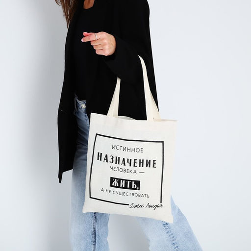Сумка-шопер Жить, а не существовать без молнии, без подкладки, цвет бежевый