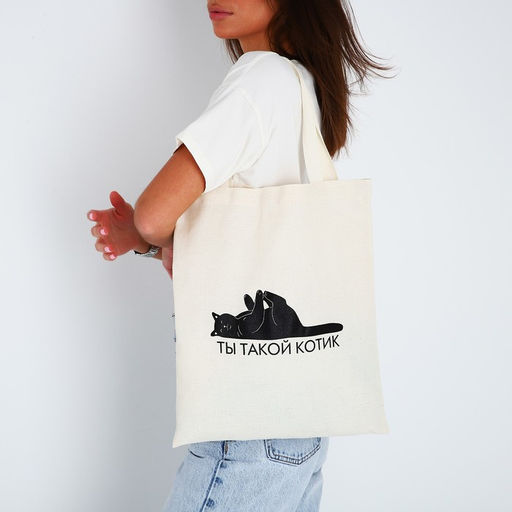 Сумка-шопер Ты такой котик без молнии, без подкладки, цвет бежевый