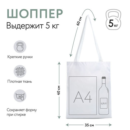 Сумка шопер NAZAMOK, 35х0.5х40 см, отд без молнии, без подклада, белая