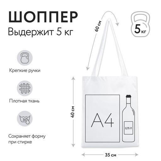 Сумка шопер, 35х0.5х40 см, текстиль, без подклада, белая