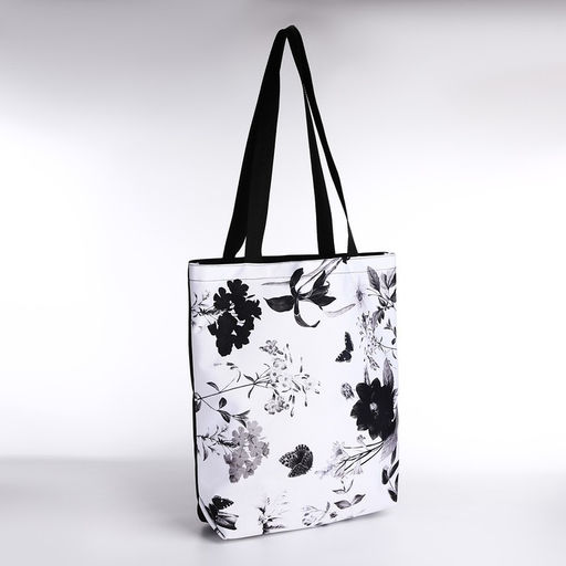Сумка шопер Цветы, 40х12х38, цвет черный