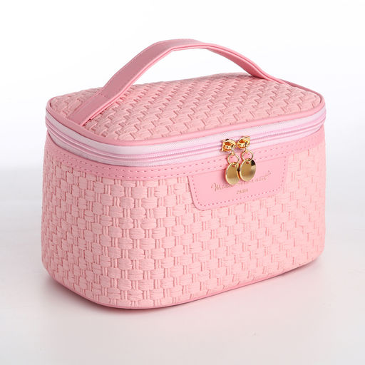 Косметичка-сундук L-б/н , 21*13*13, отд на молнии, рогожка, розовый