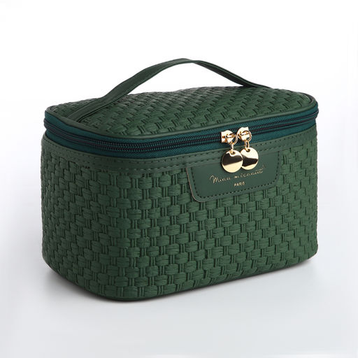 Косметичка-сундук L-б/н , 21*13*13, отд на молнии, рогожка, зеленый