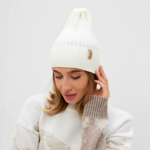 Шапка женская MINAKU "Трюфель" цвет молочный, размер 54-56