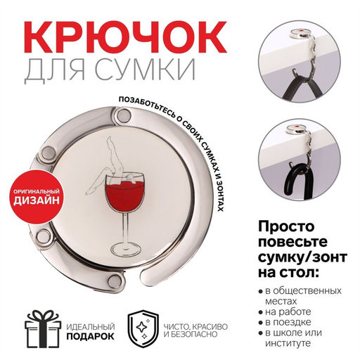 Крючок для сумки и зонта Бокал, раскладной, 15 кг, d 4,5 см
