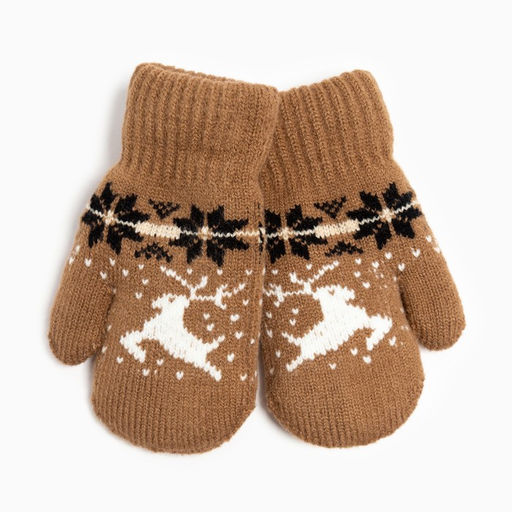 Варежки детские, цвет коричневый, размер 14 (4-6 лет)