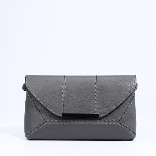 Сумка-клатч на магните, длинный ремень, цвет серый