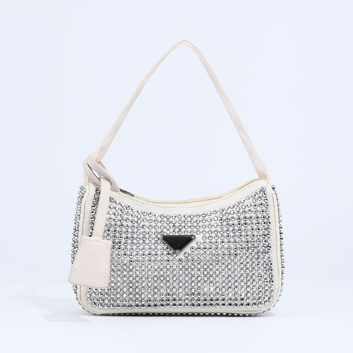 Сумка-багет на молнии, цвет бежевый/серые стразы