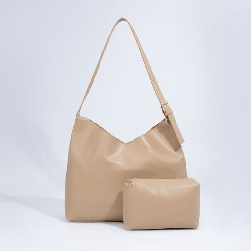 Сумка-мешок на магните, косметичка на молнии, цвет бежевый