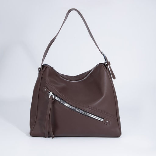 Сумка-мешок на молнии, 2 наружных кармана, цвет коричневый
