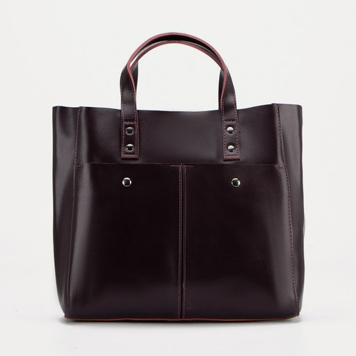 Сумка-тоут на молнии, 3 наружных кармана, длинный ремень, цвет бордовый