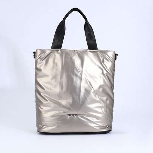 Сумка-тоут на молнии, наружный карман, длинный ремень, цвет бронзовый