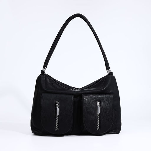 Сумка-тоут на молнии, 3 наружных кармана, цвет чёрный