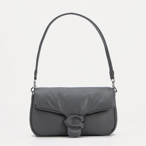 Сумка-мессенджер на клапане, длинный ремень, цвет серый